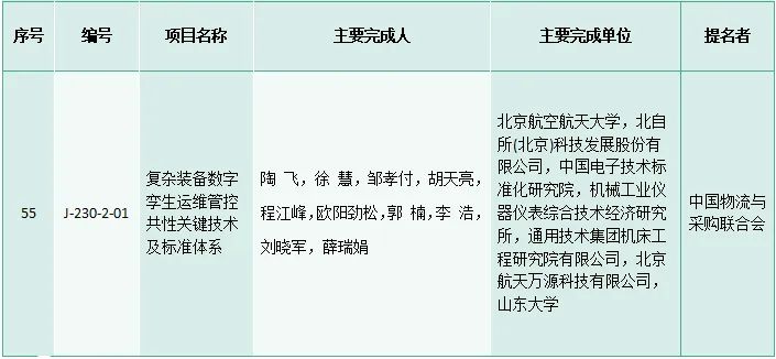 北京航空航天大学陶飞教授团队完成的项目“复杂装备数字孪生运维管控共性关键技术及标准体系” 荣获国家科学技术进步奖二等奖.