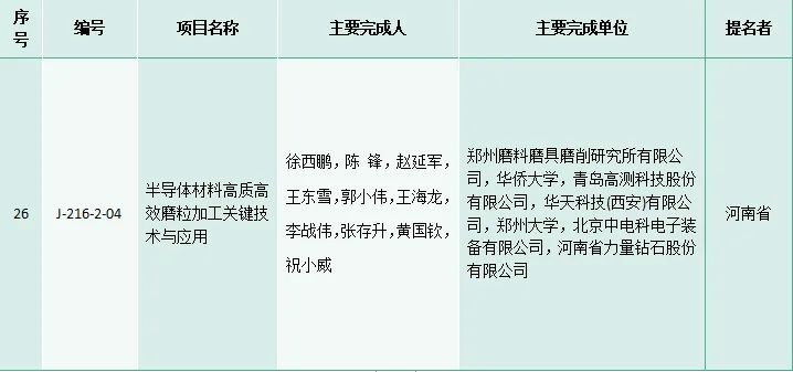 华侨大学徐西鹏教授团队完成的“半导体材料高质高效磨粒加工关键技术与应用”项目荣获国家科学技术进步奖二等奖。