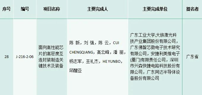 广东工业大学陈新教授团队完成的项目“面向高性能芯片的高密度互连封装制造关键技术及装备”荣获国家科学技术进步奖二等奖。