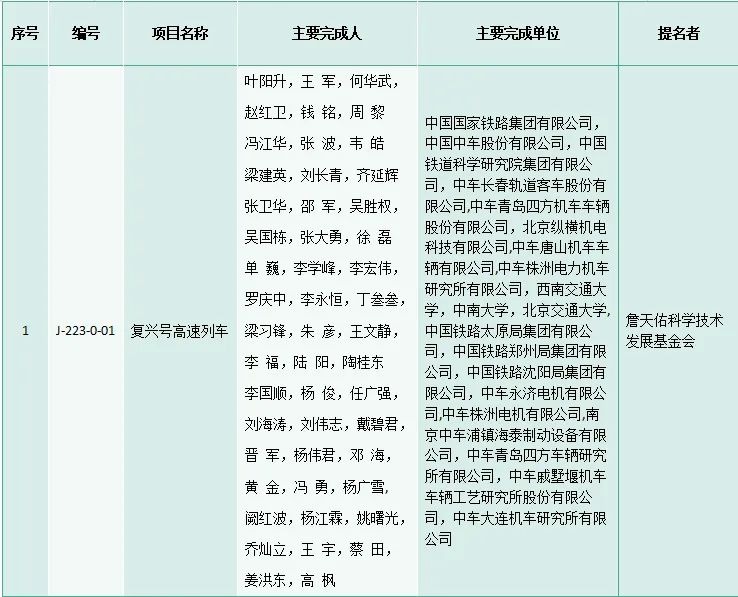 西南交通大学张卫华教授参与完成的项目“复兴号高速列车”获国家科学技术进步特等奖。