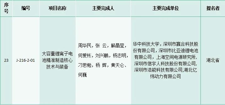 华中科技大学周华民教授团队完成的项目“大容量锂离子电池精准制造核心技术与装备”荣获国家科学技术进步二等奖。